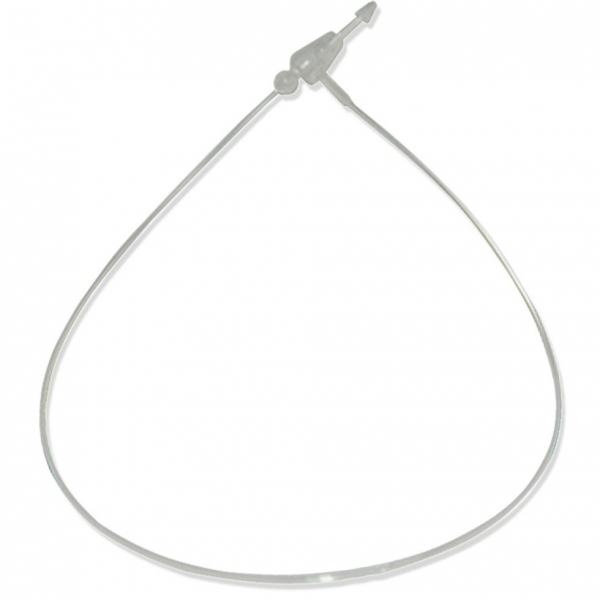 ХОМУТ  ДЛЯ ПОДВЕШИВАНИЯ ЦЕННИКОВ, ЭТИКЕТОК, ПОЛИЭТИЛЕНОВЫХ КАРМАНОВ ПВХ. РАСПРОСТРАНЕННОЕ КРЕПЛЕНИЕ НА РАЗЛИЧНОЙ ПРОДУКЦИИ.  ЗАЩЕЛКИВАЕТСЯ В СПЕЦИАЛЬНУЮ ПЕТЛЮ.  ПРЕДНАЗНАЧЕН  ДЛЯ ОДНОРАЗОВОГО ИСПОЛЬЗОВАНИЯ.