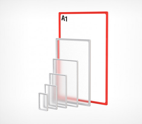 Комплект настенной перекидной системы «POSTERLINE WALL» с рамками «PF», для размещения информации формата А-1 вертикально или горизонтально. Информация легко меняется.