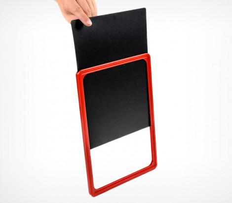 Вставка в рамки из плотного черного пластика для нанесения надписей белым маркером на меловой основе.Рекомендуется использовать со специальными меловыми маркерами, представленными в нашем каталоге. Толщина табличек - 0,65 мм.