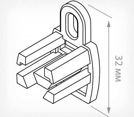Пластиковая петля-заглушка  закрывает торец профиля ECOTRACK,  предотвращая от выпадения перфорированную вставку  и придавая профилю привлекательный внешний вид. Заглушка  также выполняет функцию крючка для подвешивания.