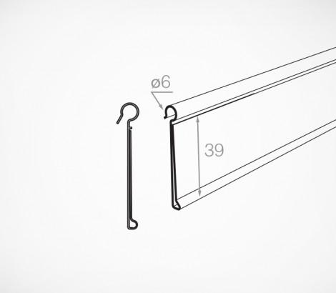 Ценникодержатель может использоваться короткими отрезками необходимой длины или в виде длинного профиля, надетого по всей длине края корзины.