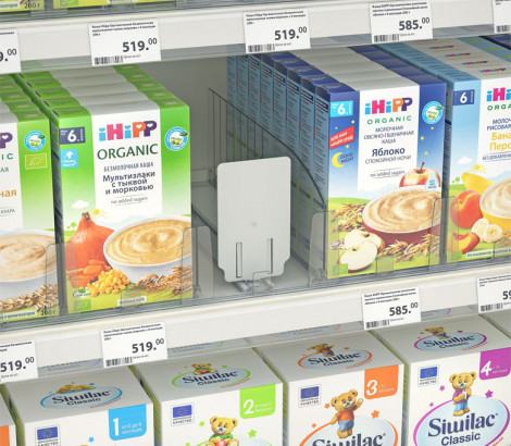 Толкатель FORTA NORMA-1 — используется в магазинах и супермаркетах для презентации товаров в небольшой упаковке, например, сигаретных пачек или лекарств, изготовлен из прочного пластика, фиксирует последнюю упаковку у края полки. Рекомендуется использовать с разделителями, имеющими передний ограничитель